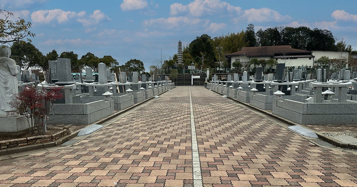 当院ではこのたび、車椅子をご利用の方にもより安心してお墓参りいただけるよう、メイン道路通路の一部にスロープを設置いたしました。