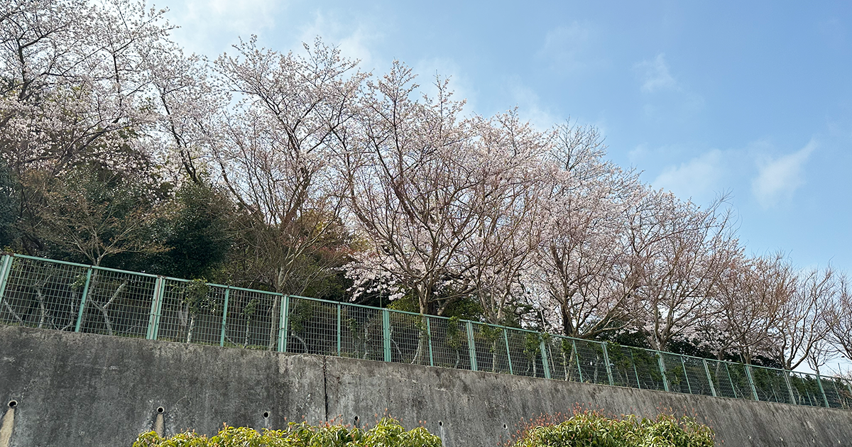 擁壁の上に並ぶ桜も、少しずつ花を開かせ、これからの見頃に向けて楽しみな様子です。