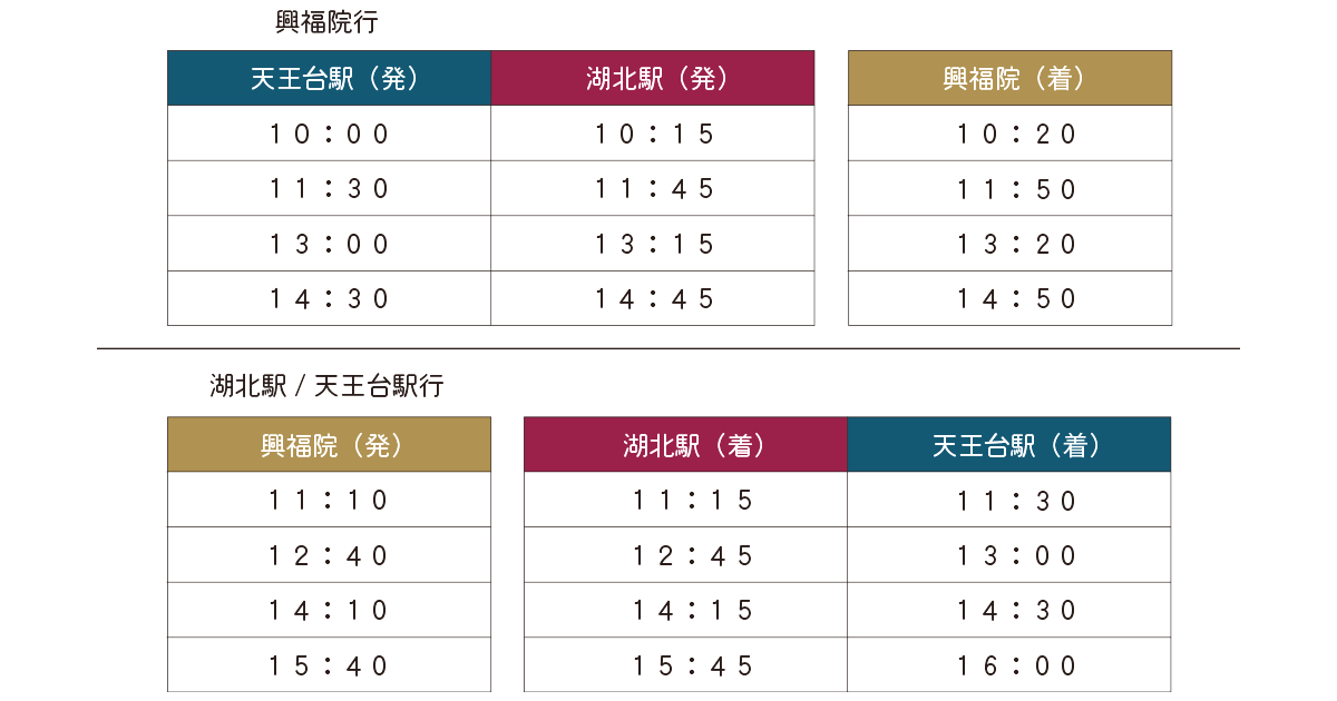 ※ご利用の際は発車時刻の5分前までに所定の場所でお待ちください。