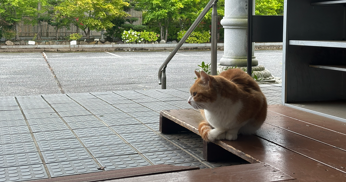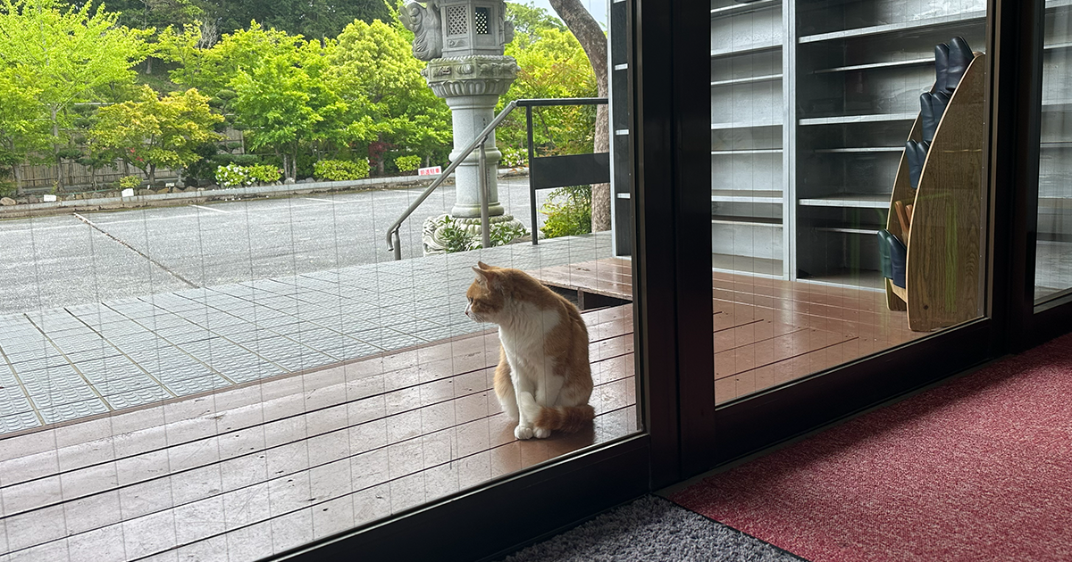 外を見てみると、一匹の猫ちゃんがこちらに向かって挨拶をしてくれているようでした。